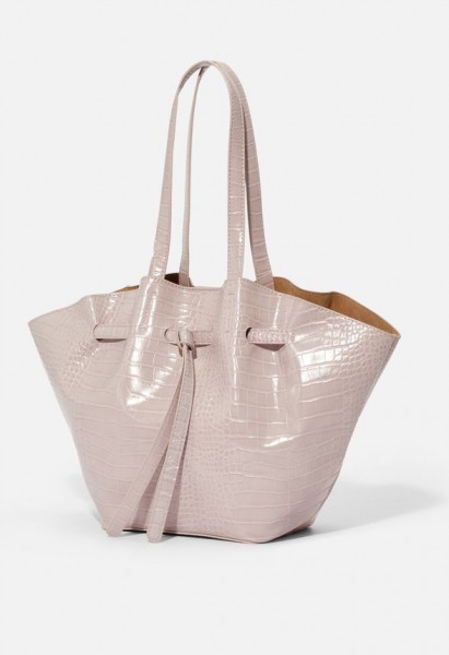 Material: Faux Leather Size: 19”L x 11”H x 5.5”D Hardware color: Gold Shoulder drop measurement : 9" Removable Adjustable Shoulder Strap: No Pockets: None Closure: Magnetic snap