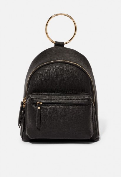 Material: Faux Leather Size: 9.5”L x 8.5”H x 4”D Hardware color: Gold Handle drop measurement : 3.5" Adjustable Shoulder Straps Pockets: 1 interior pocket, 1 interior zip, 1 exterior zip Closure: Zipper