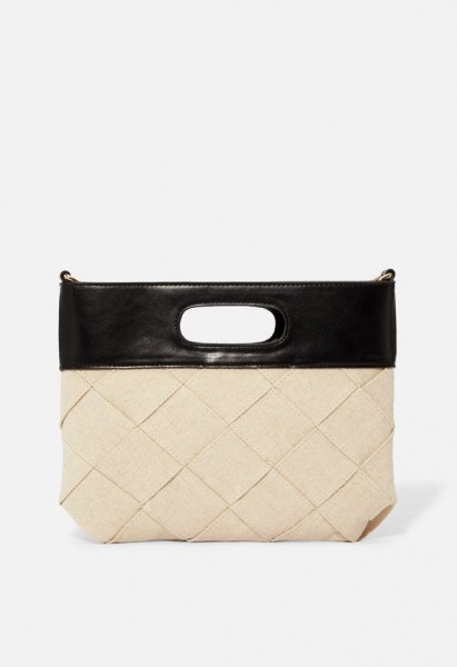 Material: Linen Size: 11”L x 9”H x 0.5”D Hardware color: Gold Removable Shoulder drop measurement : 22" Removable Adjustable Shoulder Strap Pockets: 1 interior pocket Closure: Zipper